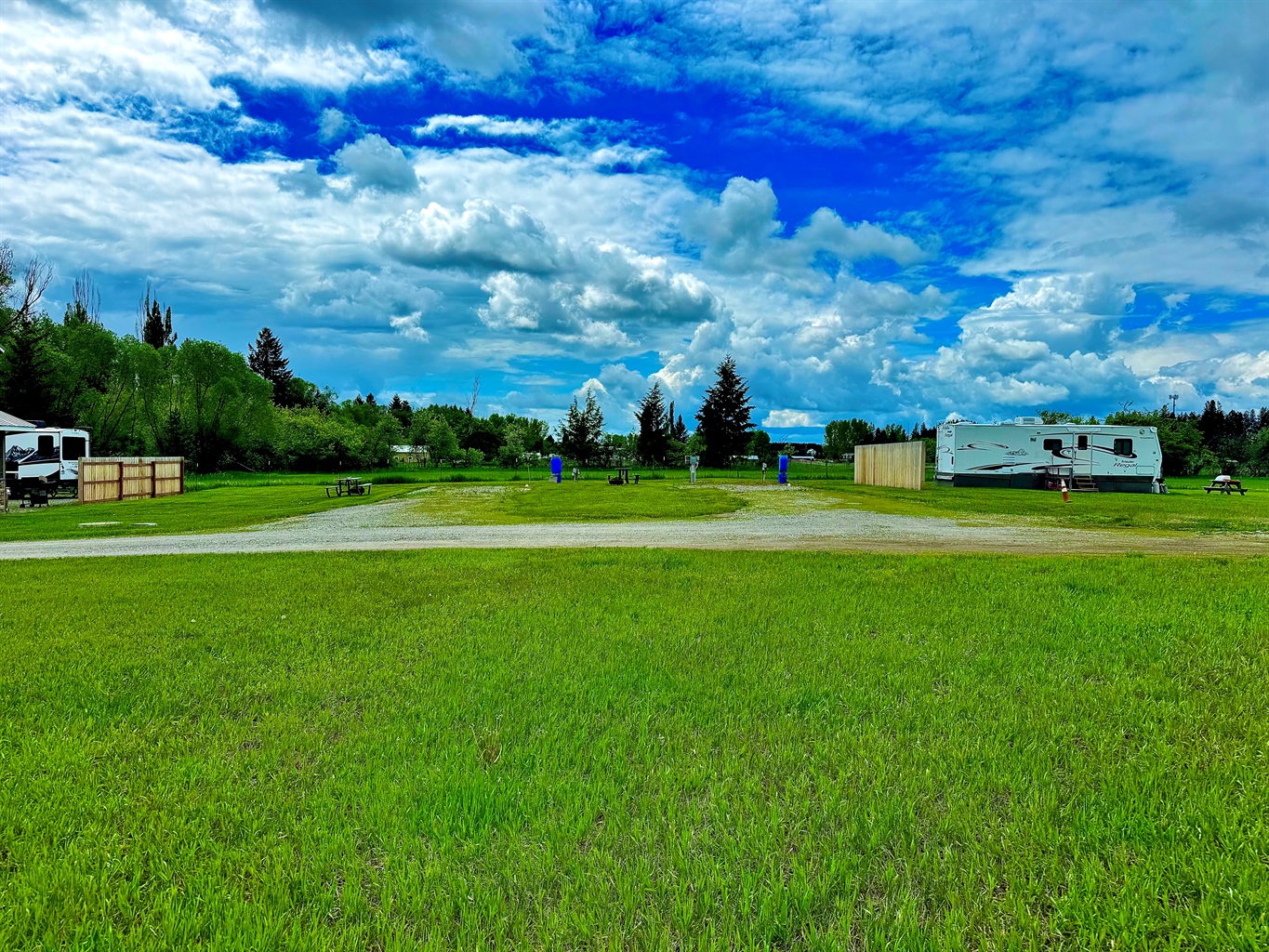 From your site, enjoy stunning views of the Whitefish Range, Columbia Mountain, and Teakettle Mountain. Each RV pad offers 50-amp power, potable water, sewer hookups, and WIFI. Guests also have access to shared amenities including a half bath, laundry room, BBQ grill, field with horseshoe pits, and a firepit with picnic tables. A private fire ring is provided at your campsite when fire conditions allow.
